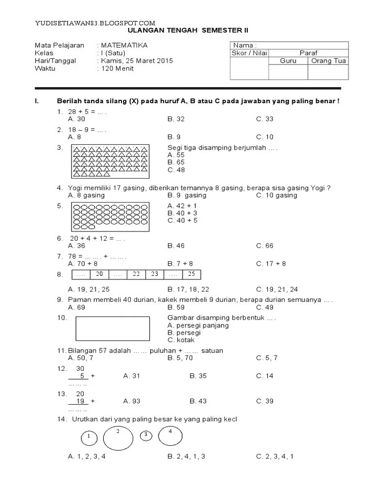 Soal Ujian Sd Kls 1 K 13 Semester 2 : Materi Dan Soal Matematika Kelas 1 Sd Semester 1 Kurikulum 2013 Admin Sekolah / Buku pendamping tematik terpadu sd kelas 4,.kurikulum 2013 edisi revisi # tema 1 :